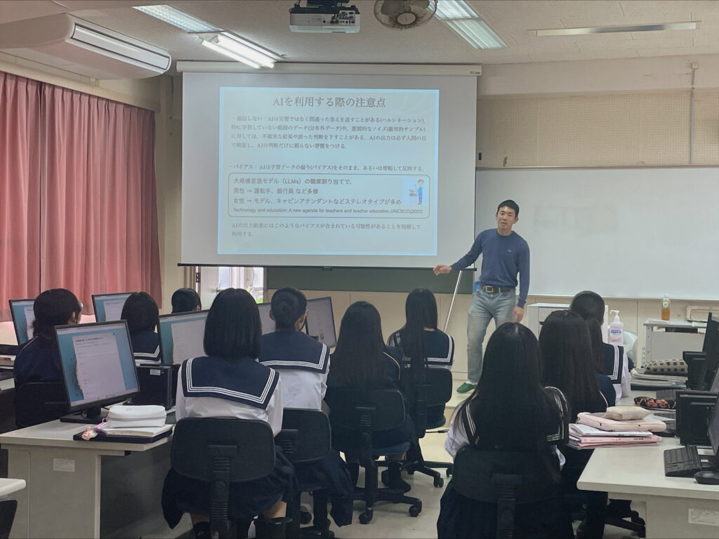 令和7年11月27日および28日の2日間、沖縄県立八重山高等学校において、「情報Ⅰ」を履修する生徒を対象とした出前授業を実施しました。本事業は、離島地域における数理・データサイエンス・AI教育の機会拡充を目的として、本学が継続的に取り組んでいる取組の一環として実施したものです。