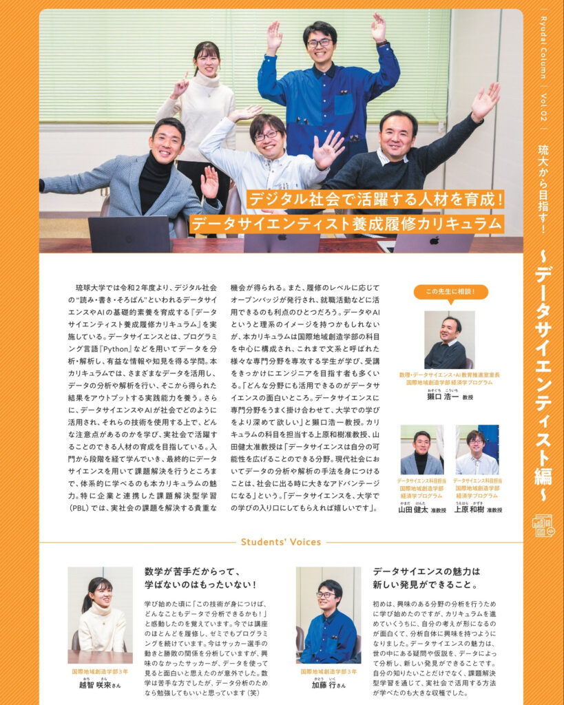 琉球大学「大学案内2026」において、データサイエンティスト養成履修カリキュラムが紹介されました。